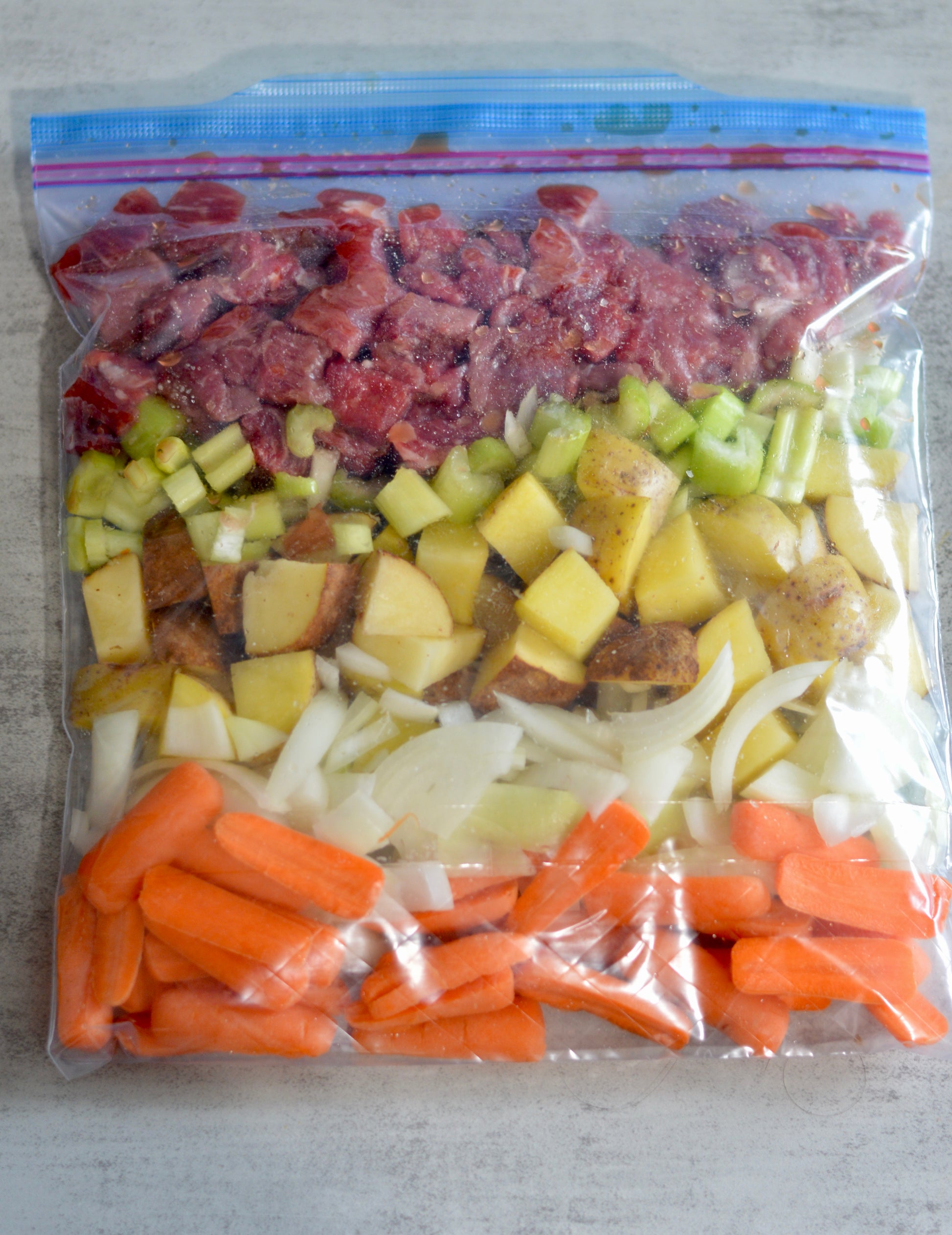 Flavorful French Creek Stew Meat, locally sourced carrots, onions, celery and potatoes seasoned simply and marinated in tomato juice.