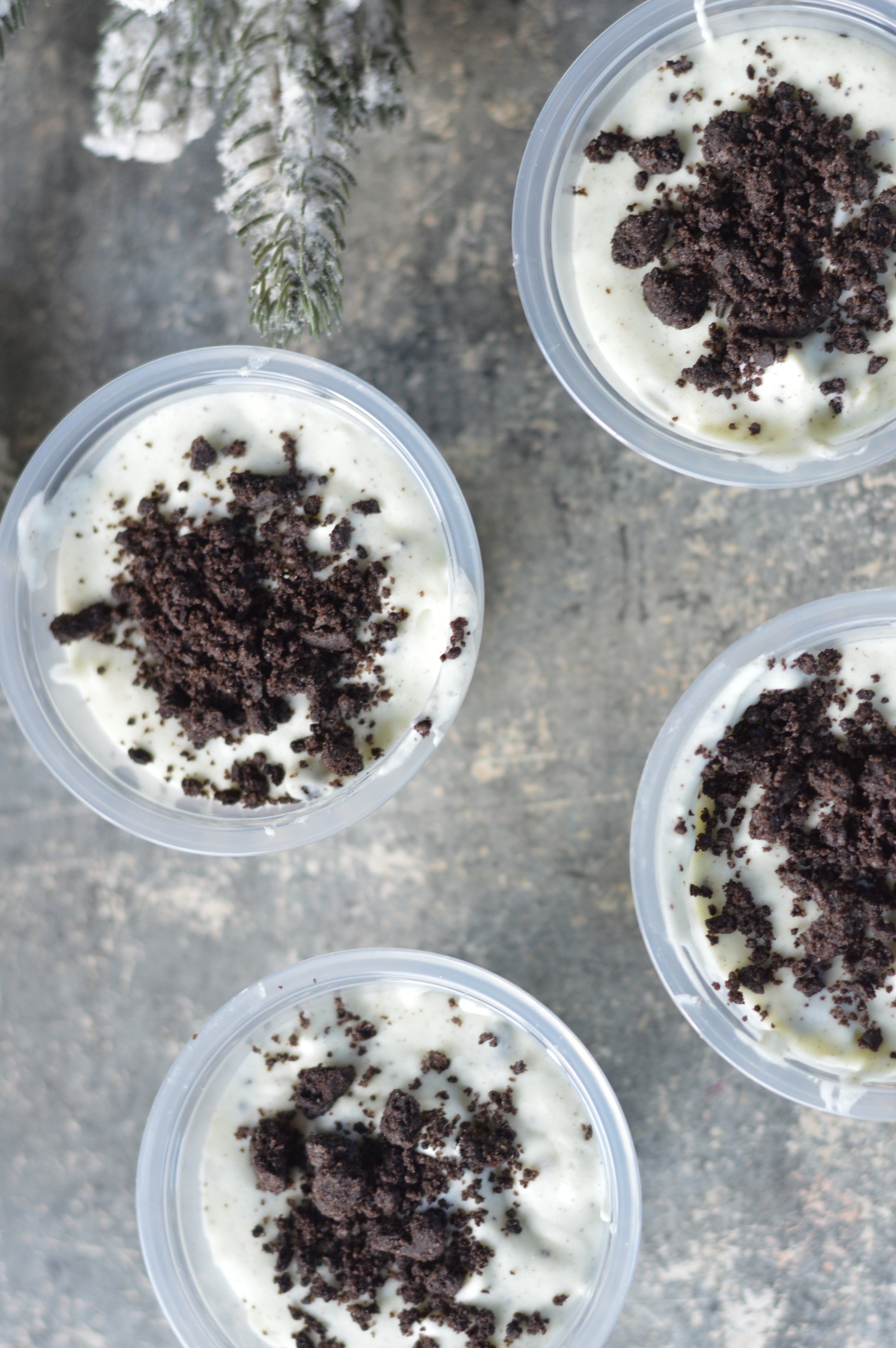 ingredients: cream cheese, heavy cream, Oreos, powdered sugar, mint extract, green food coloring.